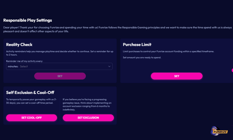 Funrize offers several self-exclusion tools to help players manage their gaming activities responsibly:
